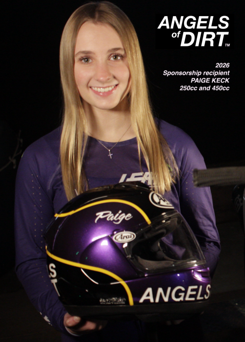 Debuting at this year's Flat Out Friday, Keck will compete wearing the first-ever helmet emblazoned with the Angels Of Dirt logo, introducing Charlotte's story to a new generation. Paige will race the 2026 season in both the 250cc and 450cc classes as part of AMA District 16 competition and showcase events.