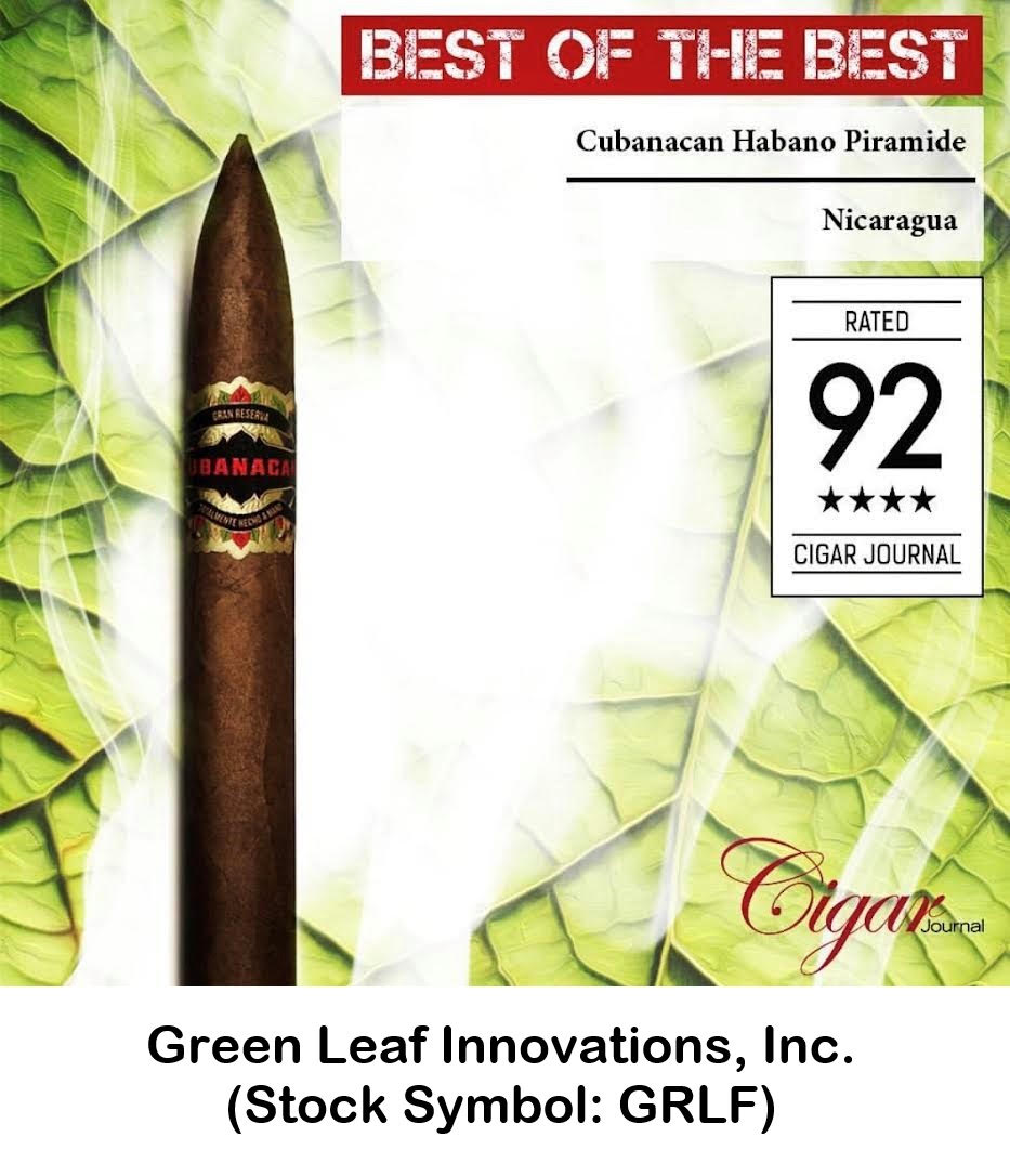 Green Leaf Innovations, Inc. (Stock Symbol: GRLF) is a Florida corporation and emerging growth company engaged in the marketing and distribution of handmade premium cigars. GRLF strategically imports and distributes premium cigar brands manufactured in Estelí, Nicaragua, led by the Mederos family-third-generation Cuban cigar makers with heritage dating back to the 1800s in CUBA. The GRLF portfolio includes CUBANACAN, MEDEROS, TABACALERA SERRANO, MAL.CRI.AO, and COCOA brands.